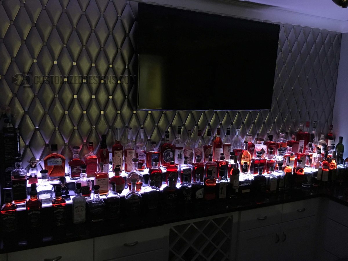 Bar Displays, Home Bar Ideas2 Step Home Bar w/ Huge Whiskey Collection 3 Step Home Bar Display – Miami Hurricanes & Tampa Bay Buccaneers 2 Step Display – Jack Daniels Marine Corp