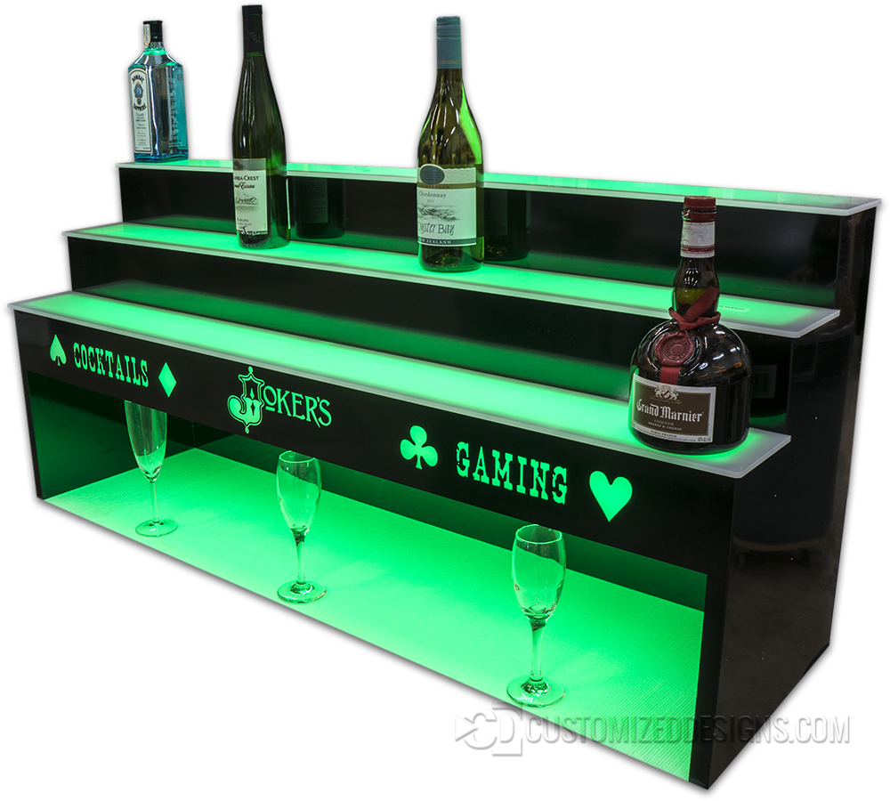 Bar Displays3 Tier 48″ Bar Display w/ 10″ High Storage LED Lighted Floating Shelves 2 Tier Liquor Display w/ Titos Vodka & Makers Mark Logos