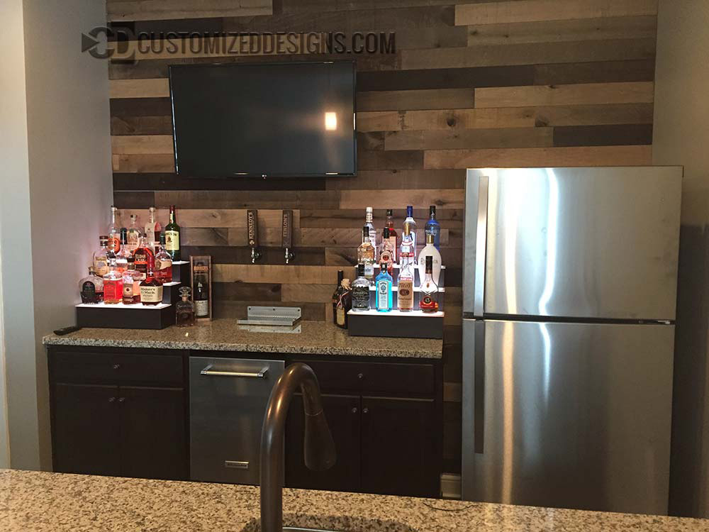 Bar Displays, Home Bar Ideas3 Tier Home Bar Shelving w/ Gray Finish LED Shelves 7LED Lighted Sign in Board for Special Events