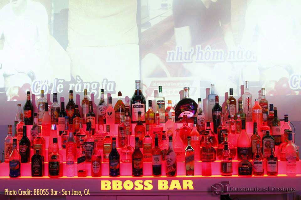 Bar & Nightclub, Bar Displays5 Tier Lighted Liquor Display Element Modular Highboy Tables w/ 30″ Square Tops e30 Series LED Tables