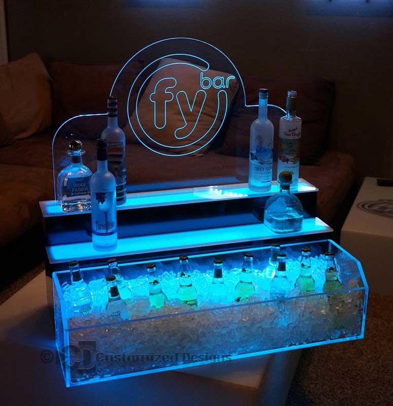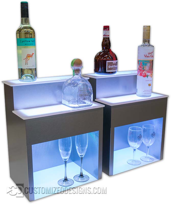 Customer photo showing off their 3 tier raised liquor displays. Luckily they’re not as blindingly
